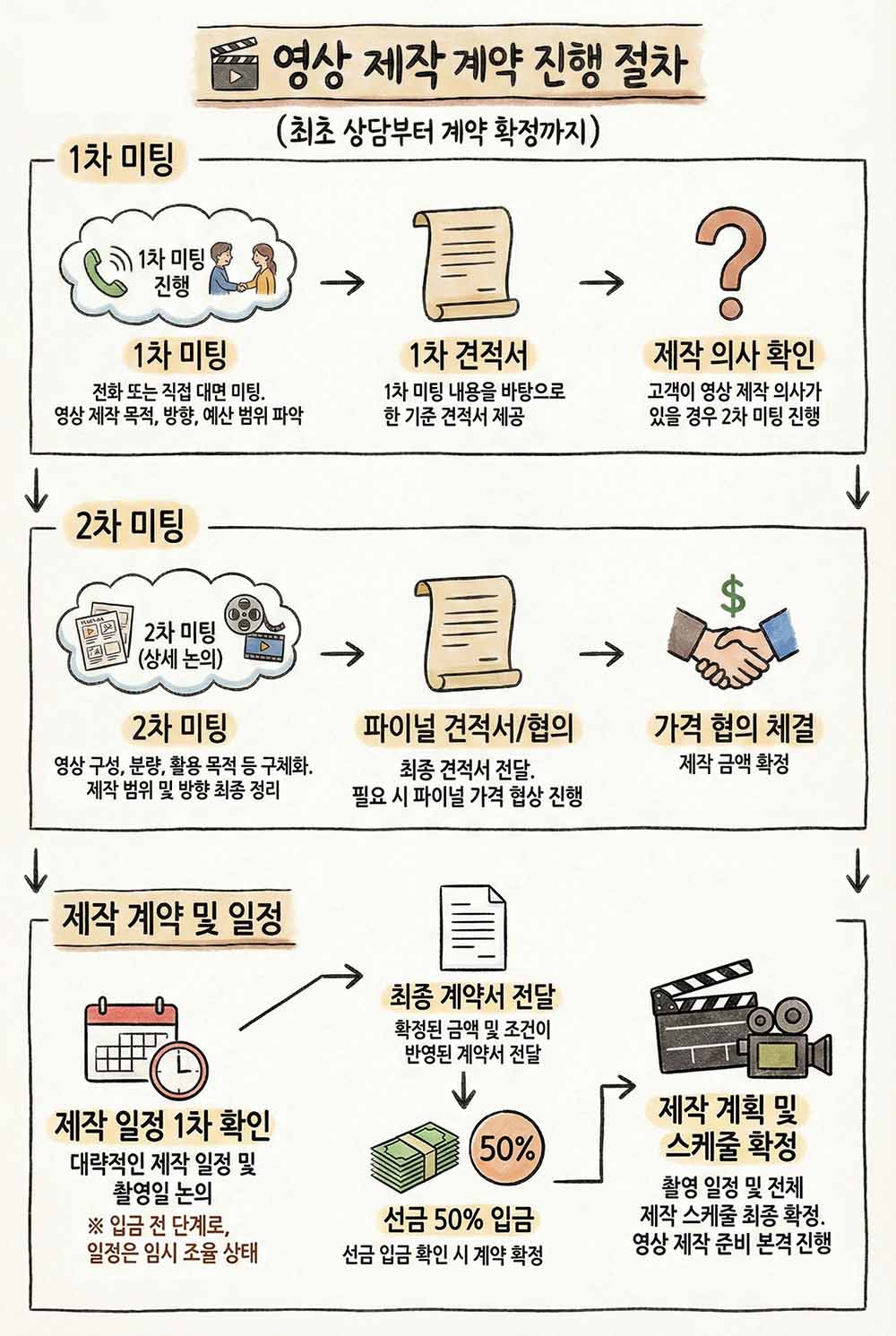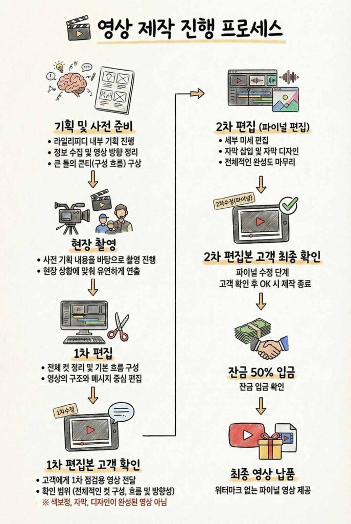계약금(총 제작비의 50%) 입금이 확인되면 촬영/제작이 시작됩니다